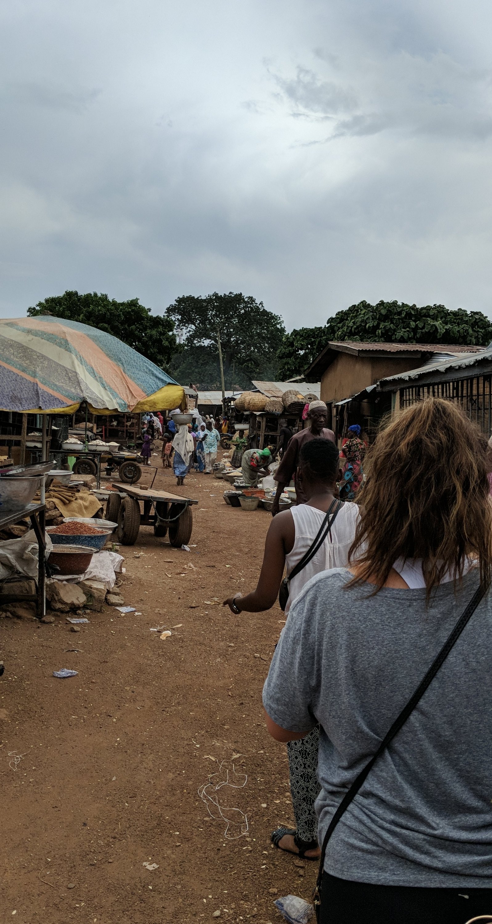 When we landed we walked into a tiny airport, and waited for our luggage to be rolled through an opening in the wall. Once it came through everyone waiting for their bag manually rolls them down to the end. We grabbed our bags and walked out to meet our team leads and a bunch of other fellows who came to meet us. Our driver, Auyuba drove us away from the airport, which also seems to be an Air Force Base, according to the signs. We made our way to Hotel Picorna. A group of fellows and I decided to walk through the local market. We saw tons of fruit, beans, bagged spices, vegetables, dried fish, and so much more. The noises, color and smells changed every time you looked somewhere new. Everyone was packed into a very small space, and the walking paths were very small. So many people yelled “hello” or “how are you?” as we walked by. One lady stopped us and had some of the fellows help her pound Fufu dough. We got a little lost in the market and Eliza (one of the fellows) had to get out her Google maps. We made it back to the hotel and spent some time getting to know other fellows until dinner. We had dinner together in the upstairs dining room. Our team leads shared some safety facts and we all did a lot more teacher talking. I can’t say this was a restful night. There were issues with a few people’s rooms at the hotel, but nothing catastrophic. We had a few hours of rest coming the next day on our ride to Zebilla anyway.